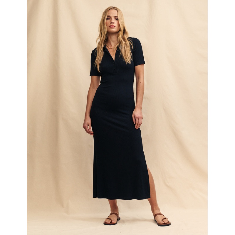 That staple black dress. This is a go-to midi for all year round. Featuring a collar and a side slit, you can take it from the boardroom to the bar. Switch between sandals or summer heels to elevate the look.CollarShort sleevesButton placketSide slitDesign