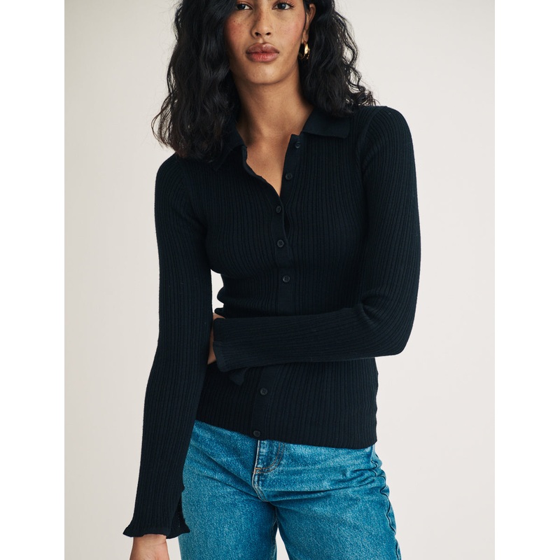 Your new go-to. Featuring a collar, button front and a soft ribbed texture, youre sure to wear it week after week. Style yours with denim and gold jewellery.CollarLong sleevesButton frontRibbed textureDesigned for a close cutSize tip: we recommend your usu