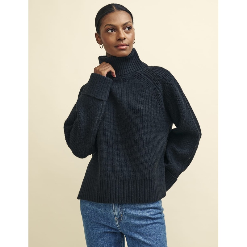 Its not winter without a chunky roll neck. This classic black jumper is super cosy with a ribbed feel. The cut is designed to fit perfectly oversized with split side seams. Style yours with your favourite denim.Roll neckLong sleevesRibbed textureDesigned f