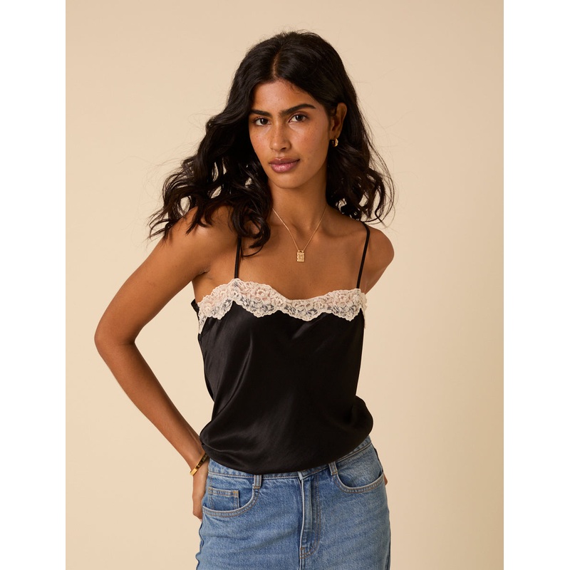 Black cami. White lace. With dainty straps and a square neck, this is the kind of top youll reach for again (and again).