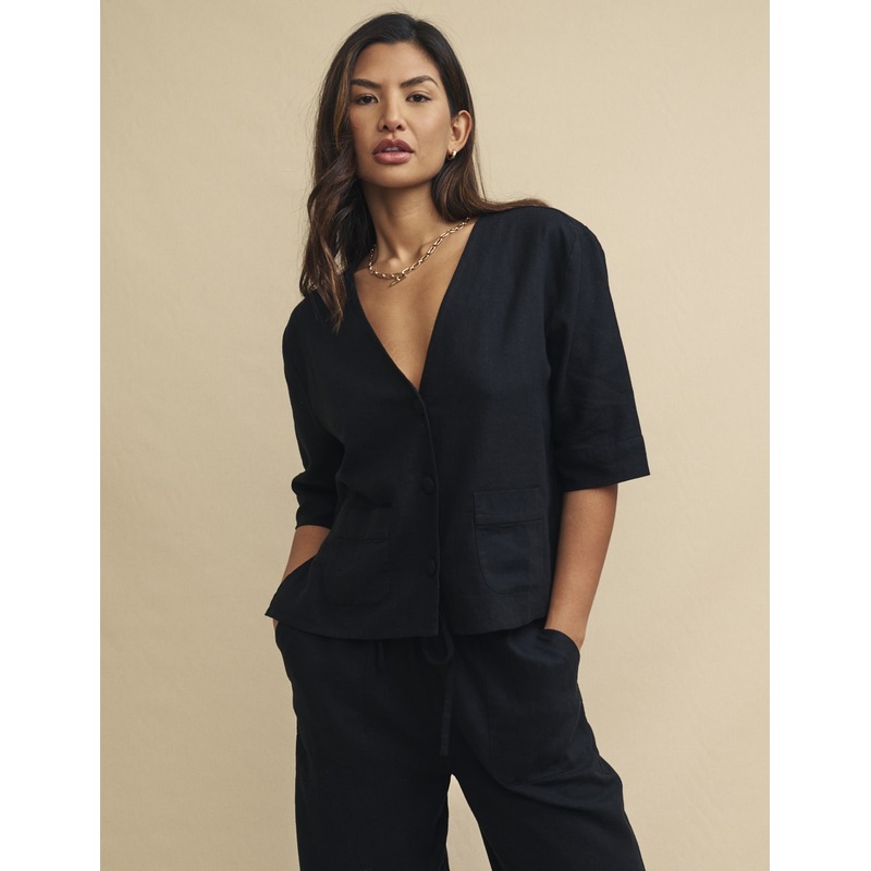 Our boxy Bobbie shirt needs to be put on rotation in your wardrobe. With a v-neckline and patch pockets, shes perfect for summer. This one comes in black. Mix and match her with everything else in the collection.V-neckShort sleevesButton frontBoxy fit