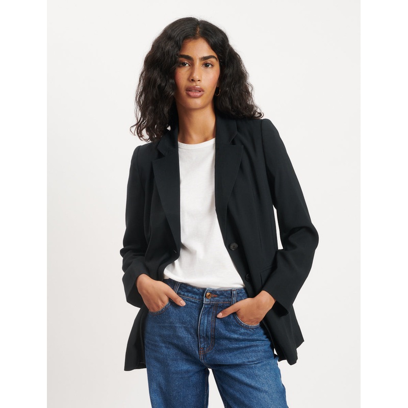 The perfect blazer? We think so. This timeless jacket has just landed in classic black. Featuring a notch neckline and flap pockets, be prepared for this to become a wardrobe favourite. Pair with the matching waistcoat and wide leg trousers to complete the