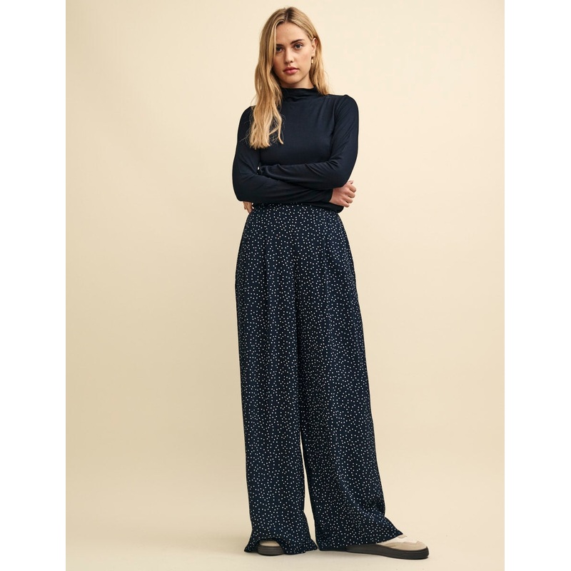 Our wide leg Zeena trousers are back in a floor-skimming length. You have the relaxed fit to thank for that. Just add retro trainers. Front pleats Pockets Wide leg cut that skims the body Elasticated waist for comfort