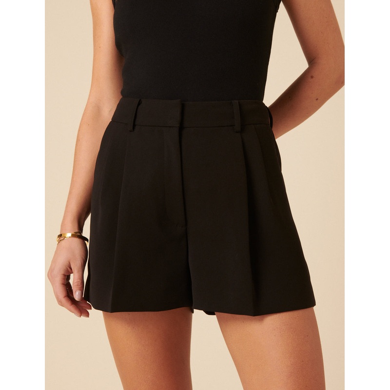 Look sharp. These black tailored shorts are just what you need on warm days that require a polished outfit. Smart pleats and slit pockets finish off the look. High waisted Belt loops Zip fastening Side pockets Size tip: we recommend your usual size
