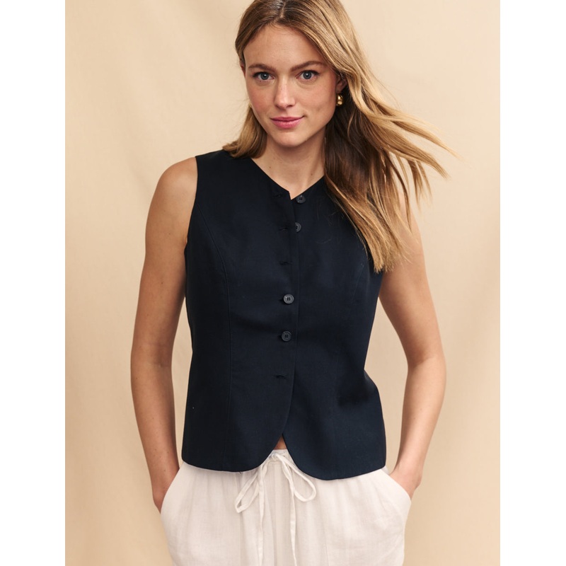 A so-now take on the timeless waistcoat. With a high v-neckline, its made entirely from lyocell in classic black. Were obsessed with the fitted shape thats lined for smoothness. Style yours with the matching wide leg trousers.