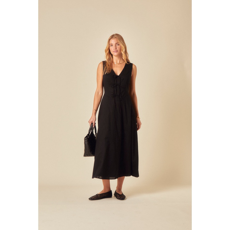 Black Tie Front Terra Midi Dress