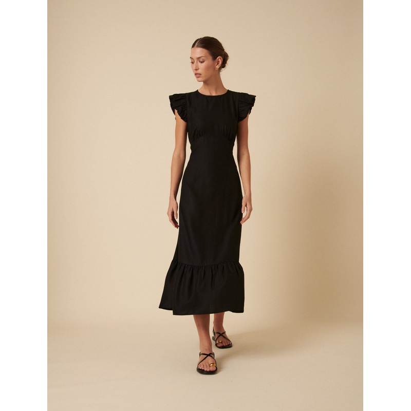 The dress that will become a go-to. Featuring in classic black, were obsessed with the short, ruched sleeves and relaxed skirt that skims the body. Were styling ours with strappy sandals.