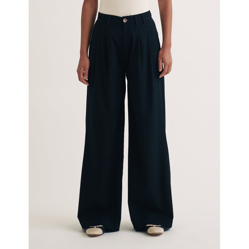 A new take on tailoring. These jeans are your formal classic but reinvented in denim. Designed to flatter, this style nips into a pleated waist and falls effortlessly to the floor with a relaxed wide leg. We love the classic black colour. Wear yours with absolutely everything.