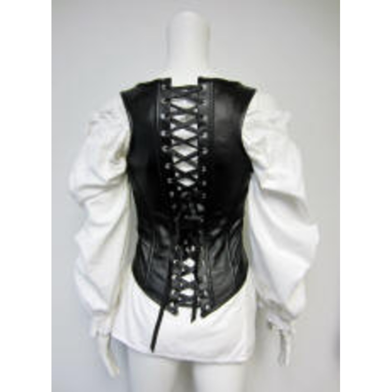 Includes: Corset features light spiral steel boning for comfortable shaping. Soft black faux leather with soft suede inner finish. Material has a bit of stretch for comfort and movement.Front steel busk closure. Lace-up back.