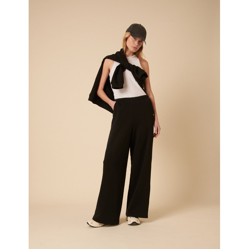 Easy, breezy, and ready for off-duty days. Coming in classic black, these wide-leg joggers bring a relaxed edge to loungewear. We love the subtle embroidery. Style with everything you already own.
