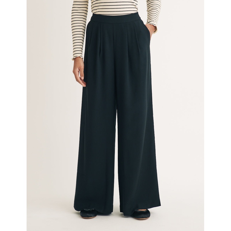 Comfort just got an upgrade. These classic black pair are a cross between relaxed and smart trousers. We love the pleated front, wide-leg cut and elasticated waist. Style yours with a Breton tee and ballet pumps.Front pleatsSide pocketsWide leg cut that sk