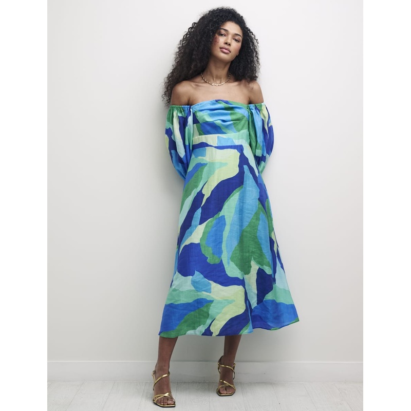 Just stunning. In a blue and green abstract print, this midaxi is the dress for all those invitations filling up your diary. Secondly, you can wear the voluminous puff sleeves on or off the shoulder depending on how you feel that day. Were obsessed. Square