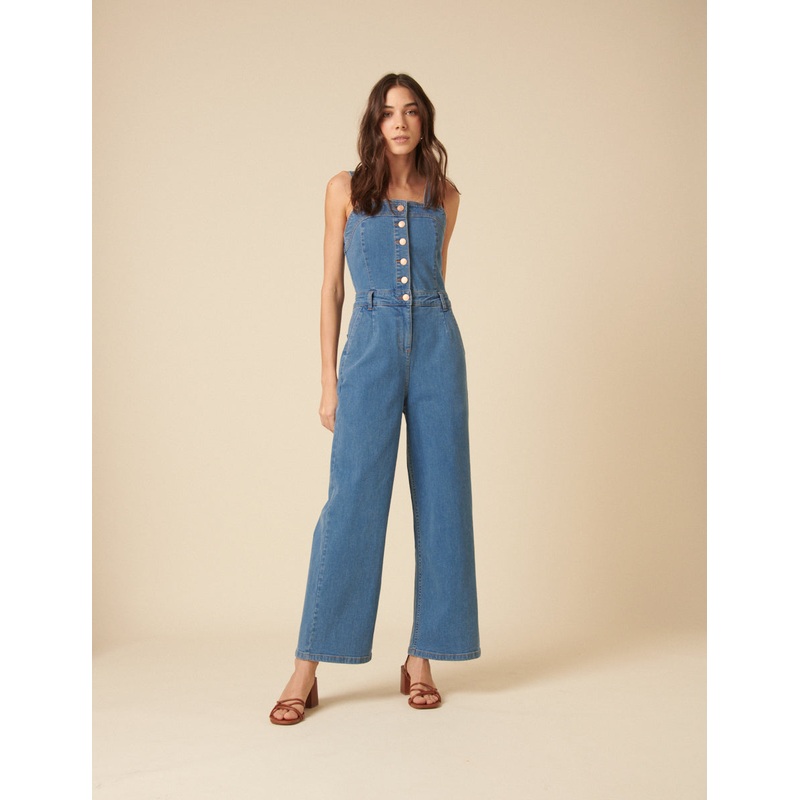 One and done. In indigo blue, our Aster jumpsuit is the easy, effortless outfit your wardrobe needs. We especially love the square neck and silver-tone NC button front detailing. Wear with sandals for a so-now look.