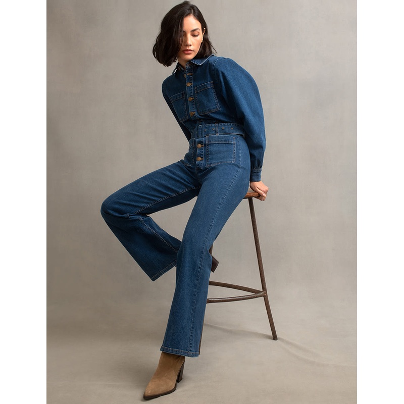 A good jumpsuit gets us every time. This denim number is sure to be worn on rotation. Its just so easy to wear with long balloon sleeves, plenty of pockets and a belt that cinches you in at the waist. We love the retro-inspired wide leg cut. Style yours wi
