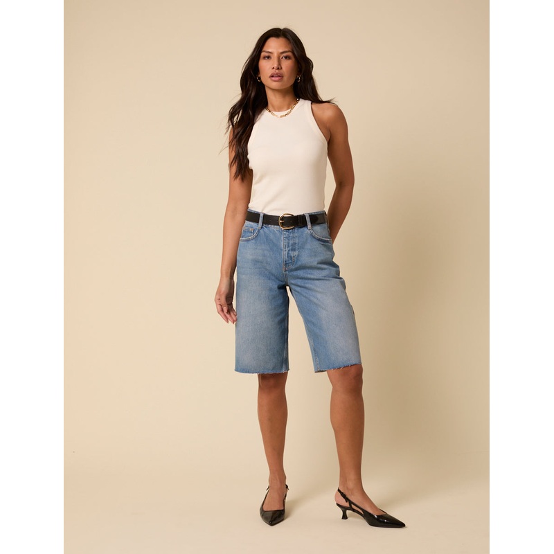Long story short, you need these. Coming in a mid-wash denim with a slightly frayed cut-off hem, and relaxed fit, theyre the perfect shorts for easy days. High waisted Classic 5 pocket style Zip fastening with silver-tone NC button Wide leg cut that skims