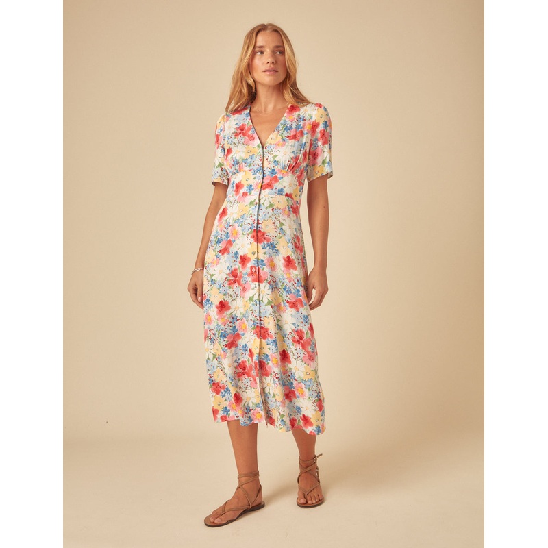 This piece was created using deadstock materials, that means we took leftover fabrics and transformed them into one of our signature styles. Alexa is all about the vintage-inspired details, from the timeless tea dress cut to the delicate covered buttons. Weve also added a subtle shirred back to gently pull you in at the waist. Elevate yours with flat pumps.