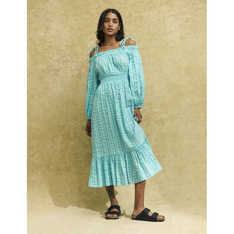 Be the first to review “Blue Gingham Check Bardot Freya Midi Dress”