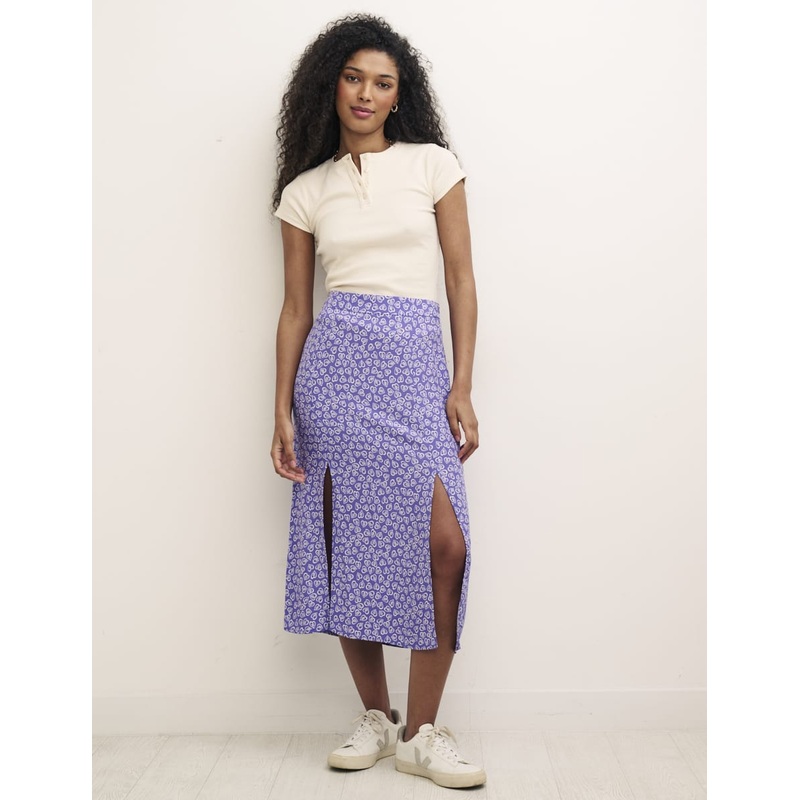 Printed with hearts, this blue Sara midi skirt has us swooning. Pair with a cute top for a look thatll take you anywhere. Double side slits Concealed zip fastening
