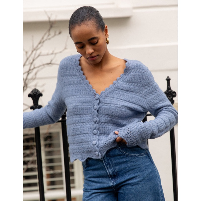 Blue Pointelle Knitted Cardigan