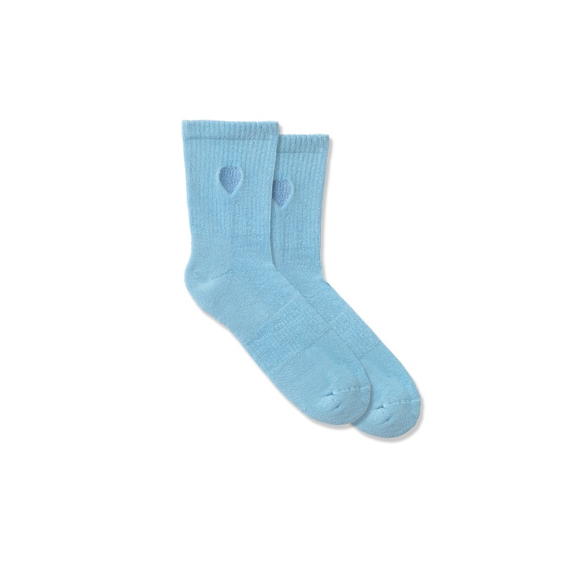 Soft and stylish. Our NC ribbed socks are perfect for every day. Coming in blue with embroidered heart detailing, team them with any of your outfits for a so-now look.