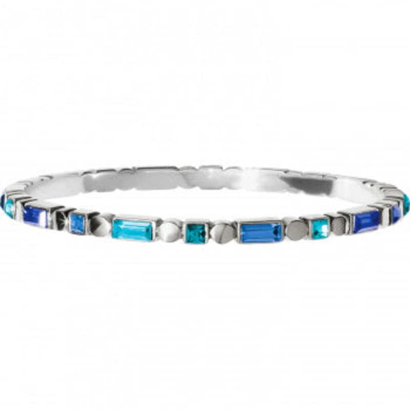 Inspired by the breathtaking beauty of the Don Bosco Cathedral in Brazil, with blue stained glass windows that create an effect of blue showers, Ava Manukyan mixed many shades of blue crystals to shower you in ethereal blues. This bangle is stunning alone or stacked.