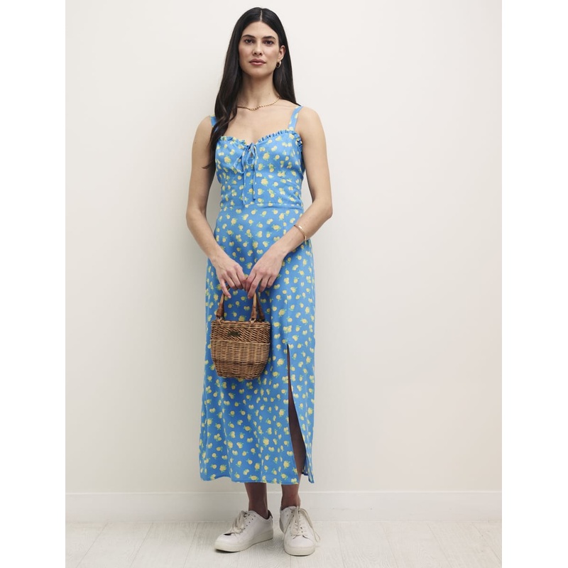 Love a juicy pattern? Our lemon-studded Lucia is the one for you. Shes slim fitting throughout the bodice with a relaxed skirt and shirring on the back for maximum comfort. Ruffles decorate the neckline to show off your dcolletage. Style yours with a straw bag for sunshine-infused plans.