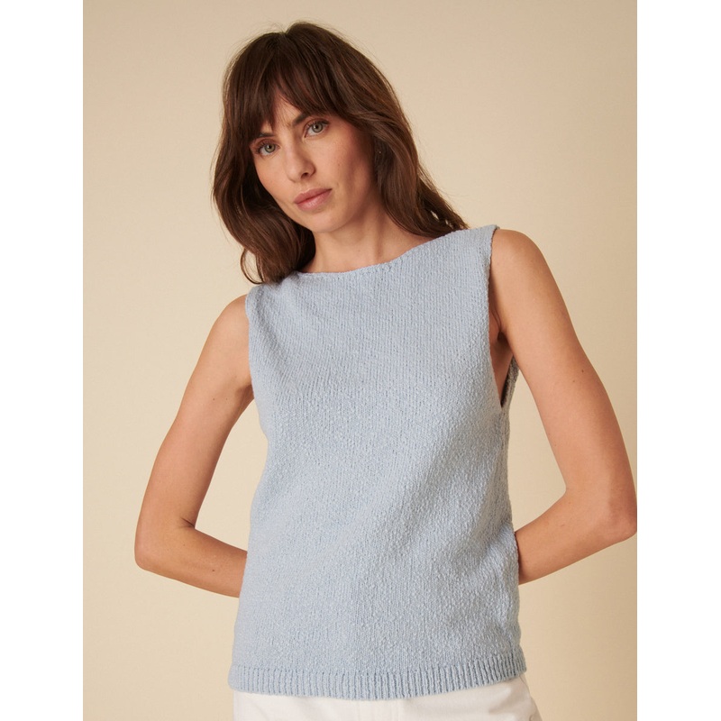 A new wardrobe staple. Coming in pale blue, we love the subtle texture of our top. She features a slash neckline and feminine V-back detail. Style with jeans.Slash necklineSleevelessV-backSize tip: we recommend your usual size