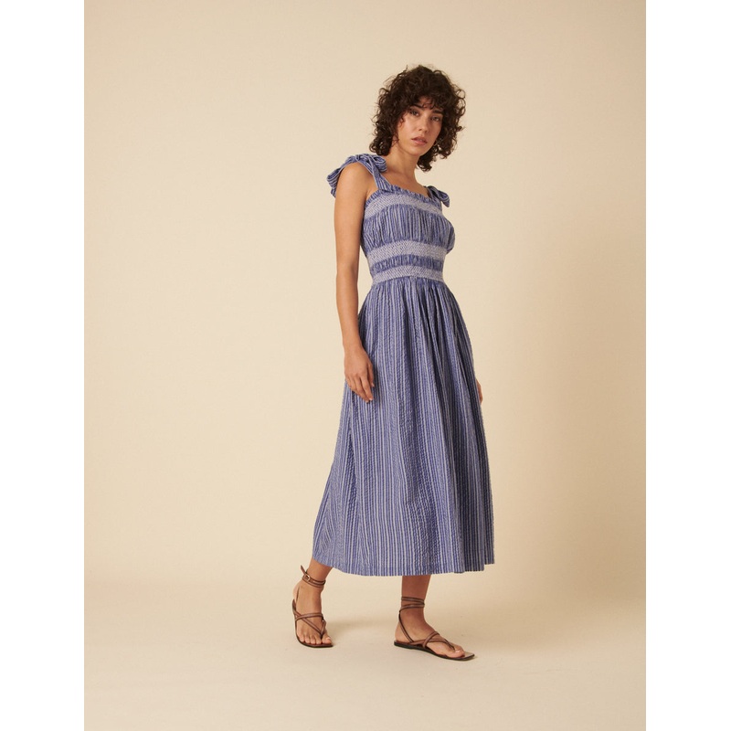 Meet Marissa. Coming in a blue and white stripe pattern, shes perfect for those sunny days. Were obsessed with the shoulder ties and waist band detail. Style yours with strappy sandals.
