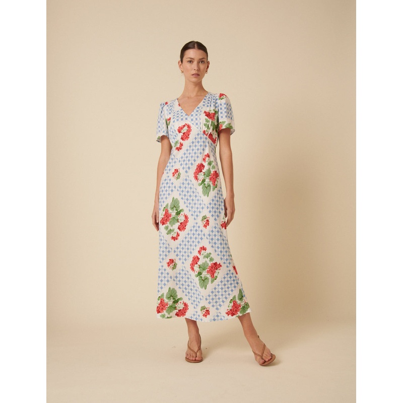 The dress youll reach for all summer. Coming in a playful vintage-inspired fruit pattern, we love the V-neckline, flattering empire waistline and airy short sleeves. Style with sandals, all season long.