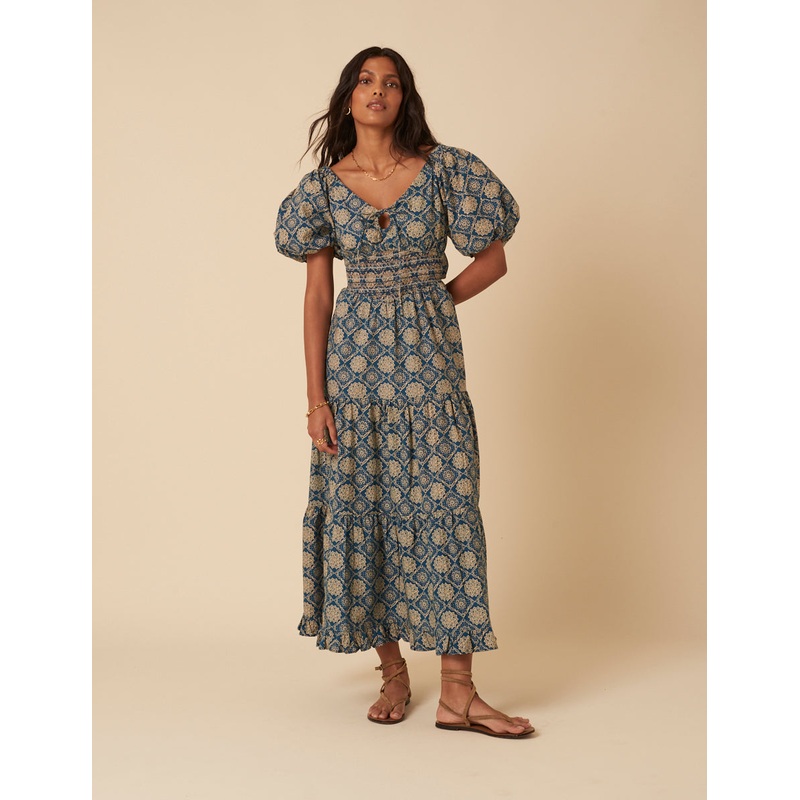 Blue Tile Printed Aria Midi Dress