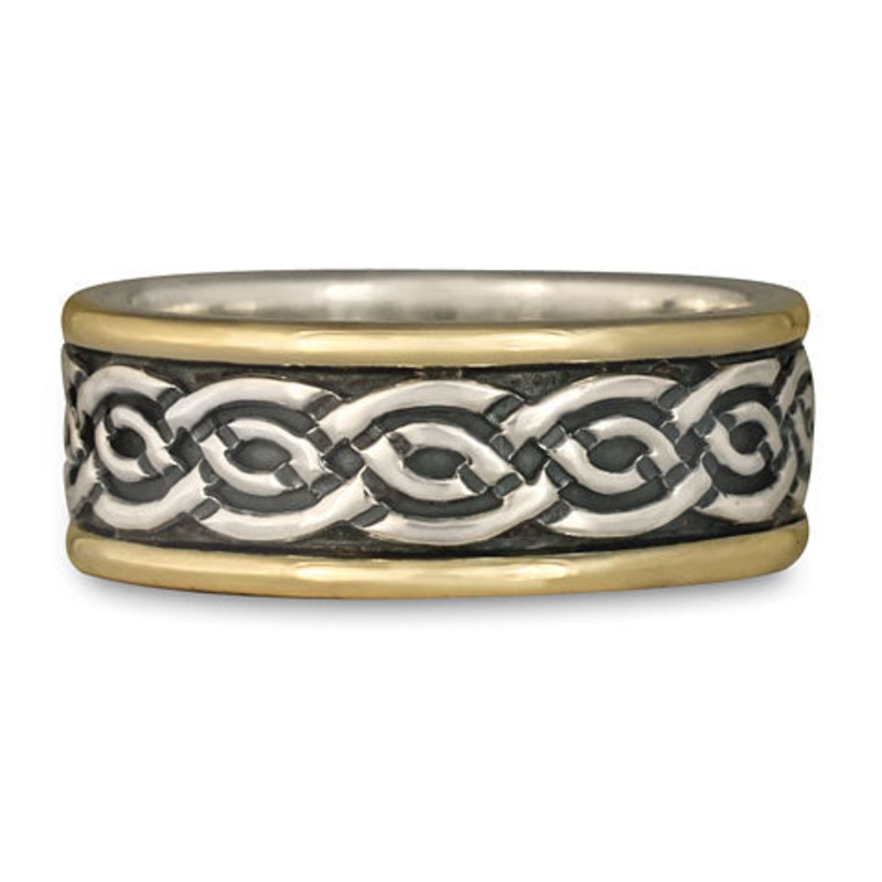 The Bordered Laura Wedding Ring is a beautiful display of graceful craftswomenship. It's both sweet and exquisite. The knot itself represents two paths gathering and focusing toward a cohesive whole, the perfect message for a beloved union.Those who are at