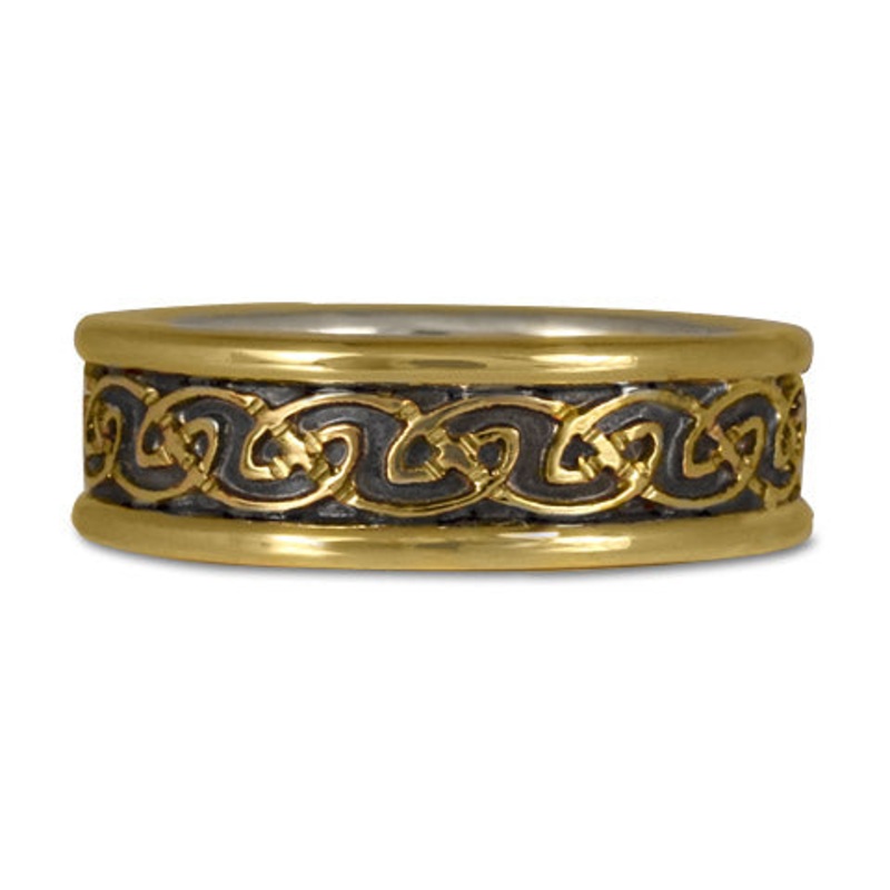 This design is based in part on triangular and wave patterns. Triangles are about force, intention and direction. Think of what an arrow does when it cuts through the air. In this case, the intersecting triangular are in balance and flow like the waves of the ocean, symbolizes dynamic creativity and harmony. From a more general perspective, this motif symbolizes the continuity of life, because the knots and the waves go on forever.