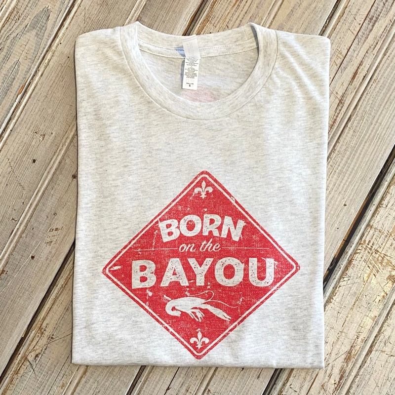 Unisex Born on The Bayou Shirt.50% Polyester, 25% Cotton, 25% Rayon