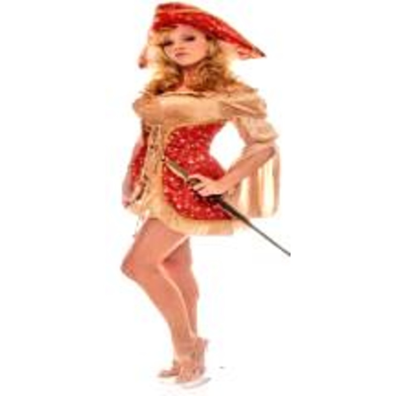 Very Good QualityIncludes: Panne mini dress w/gathered sleeves, Jacquard Bodice Overlay & matching Hat.Size: S (6-8), M (10-12), L (14-16)Color: Red/Gold (shown)