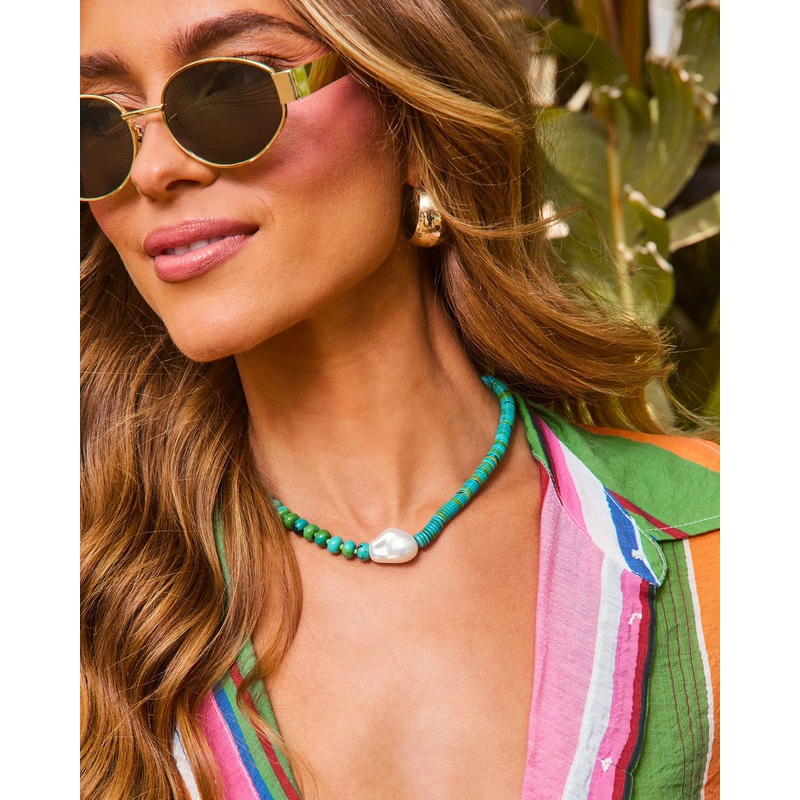 Add a pop of playful elegance to your summer look with the Brinlie Beaded Baroque Pearl Necklace. This standout piece features a mix of vibrant beads and luxe faux baroque pearls for a vibe thats both beachy and elevated. Whether you're layering it with yo