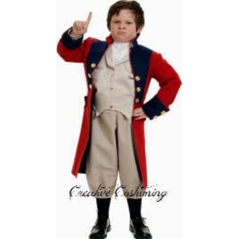 Includes: Red/Blue Jacket, Tan Vest w/attached Jabot, & Knickers/Breeches.Child Size: L (12-14)Colors: Red/Blue/Tan