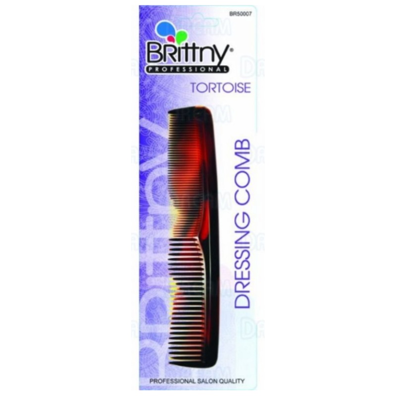 The BRITTNY TORTOISE DRESSING COMB is a unique hair styling comb crafted from tortoiseshell with a double tooth design, perfect for creating lusciously volumized and textured looks. The comb's smooth, rounded teeth won't tear or snag hair, and its gentle,