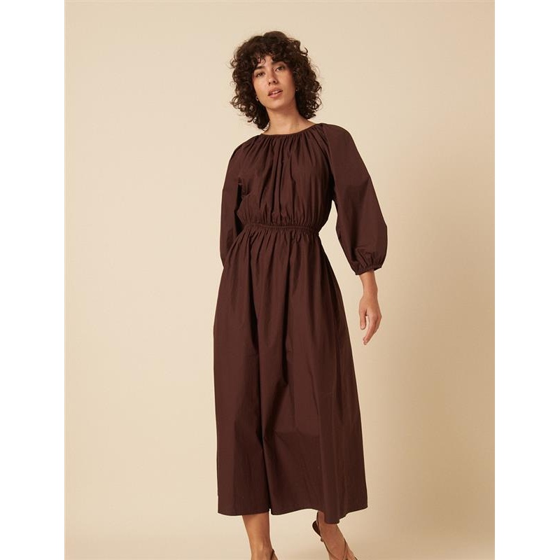 You'll wear Agatha again and again. Coming in a rich chocolate brown shade, this relaxed-fit midi dress brings effortless style. The gathered neckline and balloon sleeves are just the right touch. Were obsessed with her open back, tie detail. Style with sa