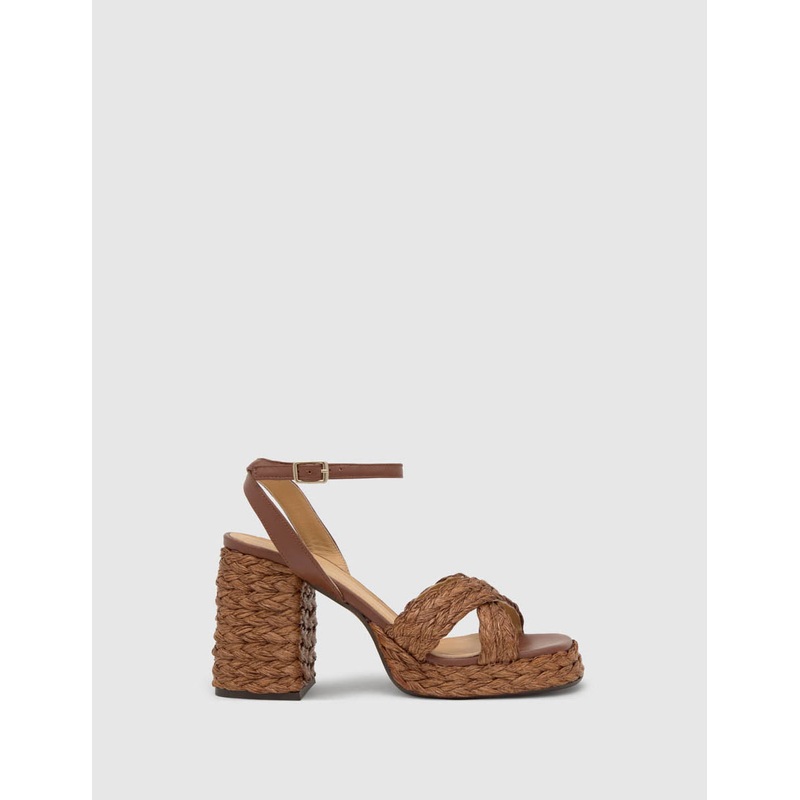 In a rich chocolate shade, these raffia sandals from Castaer feature a block heel, criss-cross front, and ankle strap. Theyre perfect for dressing up (or down). By Castaer Block heel Ankle buckle fastening