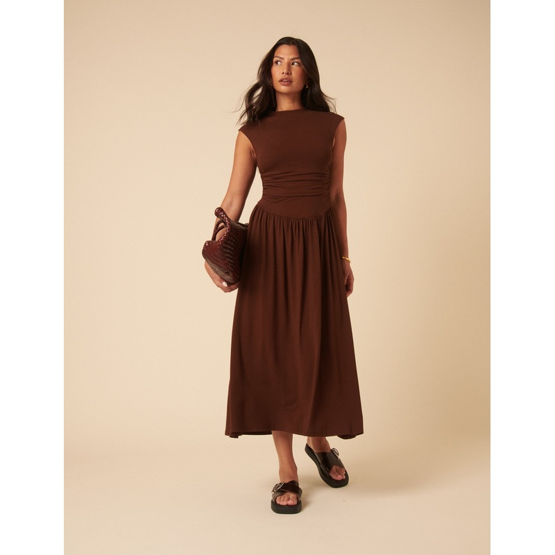 High neck Drop waist Fit-and-flare shape Size tip: we recommend your usual size