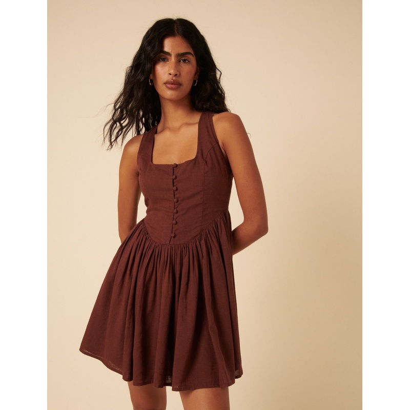 Brown Drop Waist Cora Mini Dress