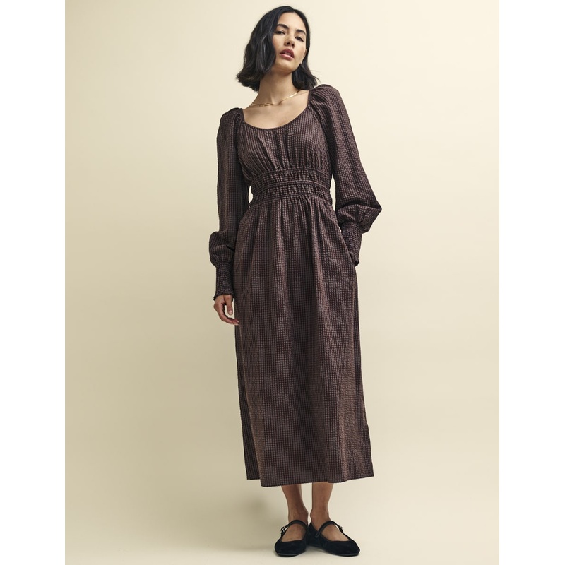 Your move. Were in love with this checkerboard print midi. Ankita comes with ultra-puff sleeves and a full skirt. Shirring around the waist and cuffs adds additional volume in all the right places. Elevate yours with gold accents. Scoop neck Long balloon s