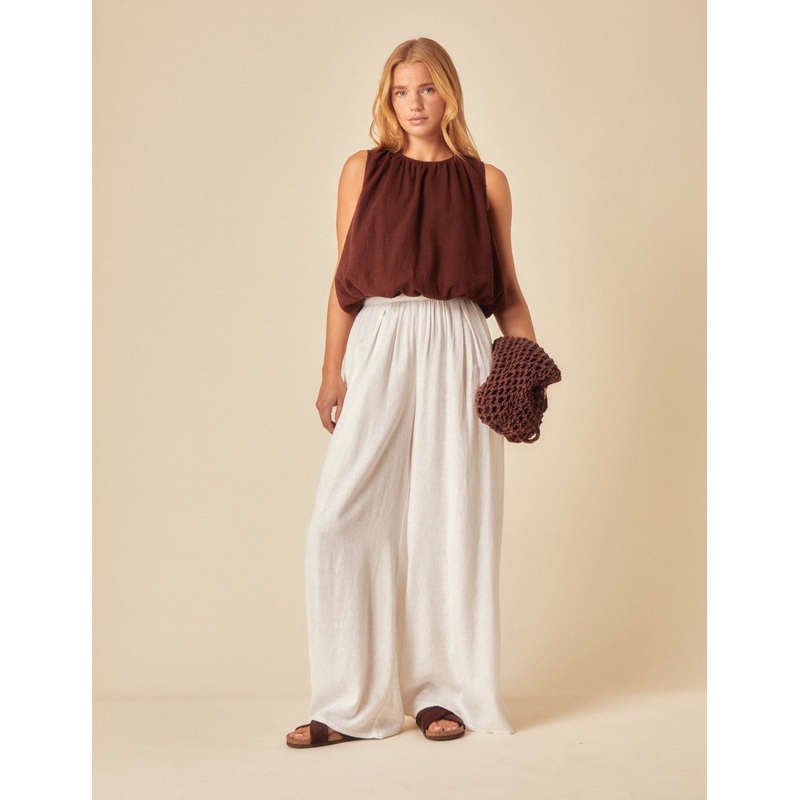 Light, airy, and effortlessly chic, our brown top is a warm-weather essential. We love its gathered neckline and soft, blouson fit.
