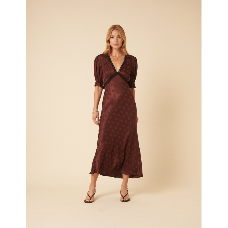 V-neck Short puff sleeves A-line skirt that skims the body Size tip: we recommend your usual size