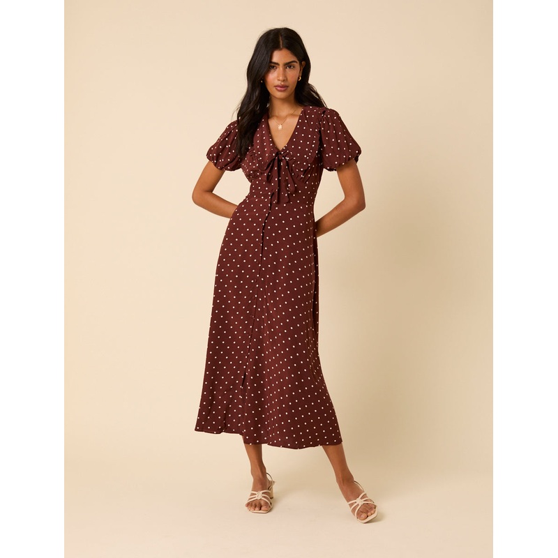 V-neck Collar Short puff sleeves Size tip: we recommend your usual size