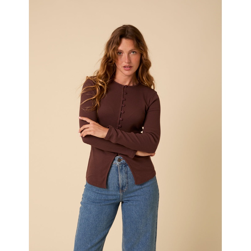Crew neck Button front Long sleeves Size tip: we recommend your usual size