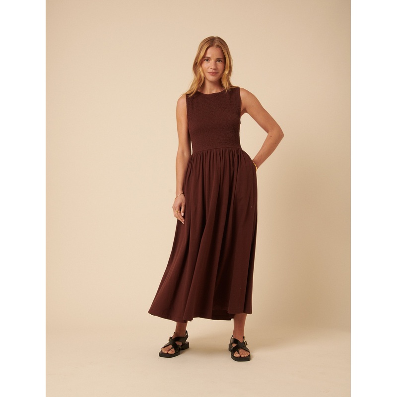 Round neck Shirred bodice Side pockets Size tip: we recommend your usual size