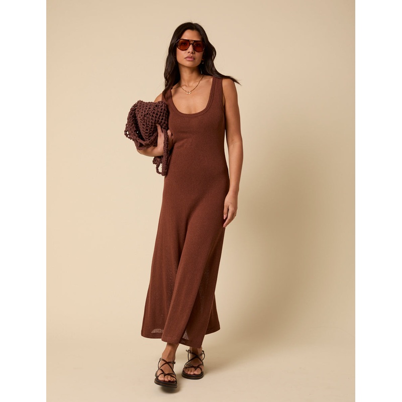 An easy one-and-done. This brown maxi dress features a scoop neckline and a relaxed fit, made for everyday wear. Just add sandals. Scoop neckline Sleeveless Designed to be semi-fitted Size tip: we recommend your usual size