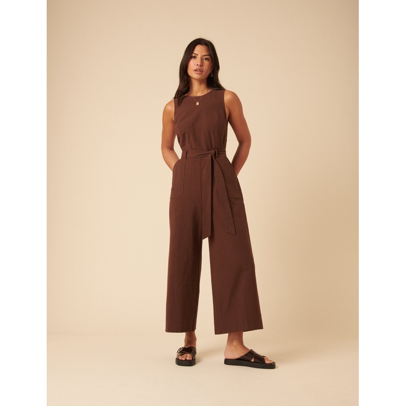 Brown Tie Waist Jumpsuit