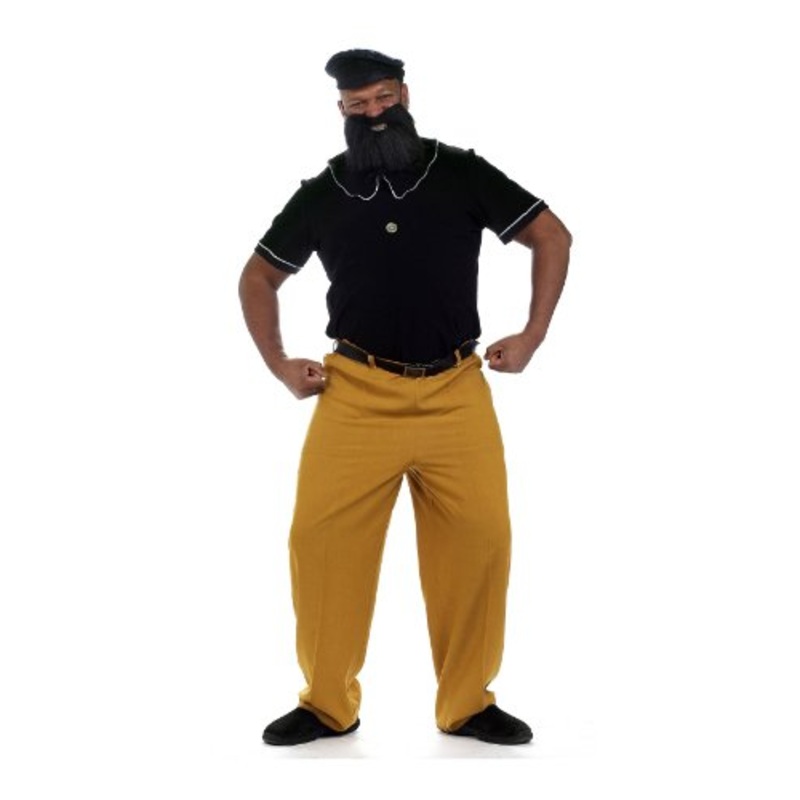 Includes: Black short sleeve shirt accented with white trim, mustard colored pants,blue/black sailors cap and full beard. Bluto/BrutusColor: Black/Mustard (shown)Size (Chest): L (46")PA5566